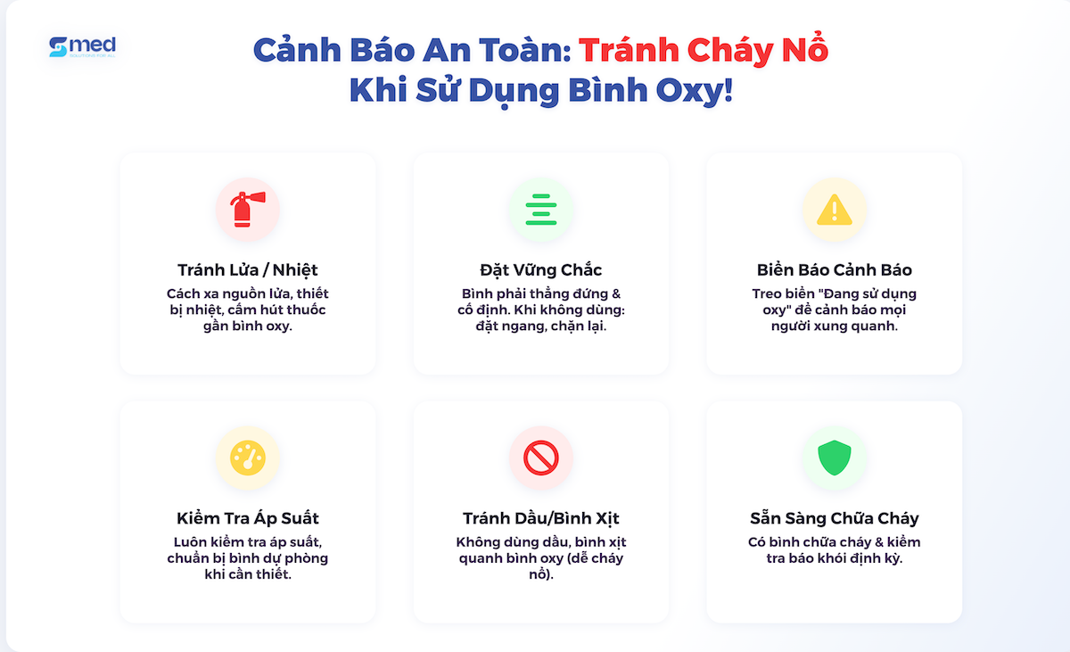 Việc sử dụng bình oxy đòi hỏi sự cẩn trọng để bảo vệ bản thân và tận dụng hiệu quả liệu pháp oxy.