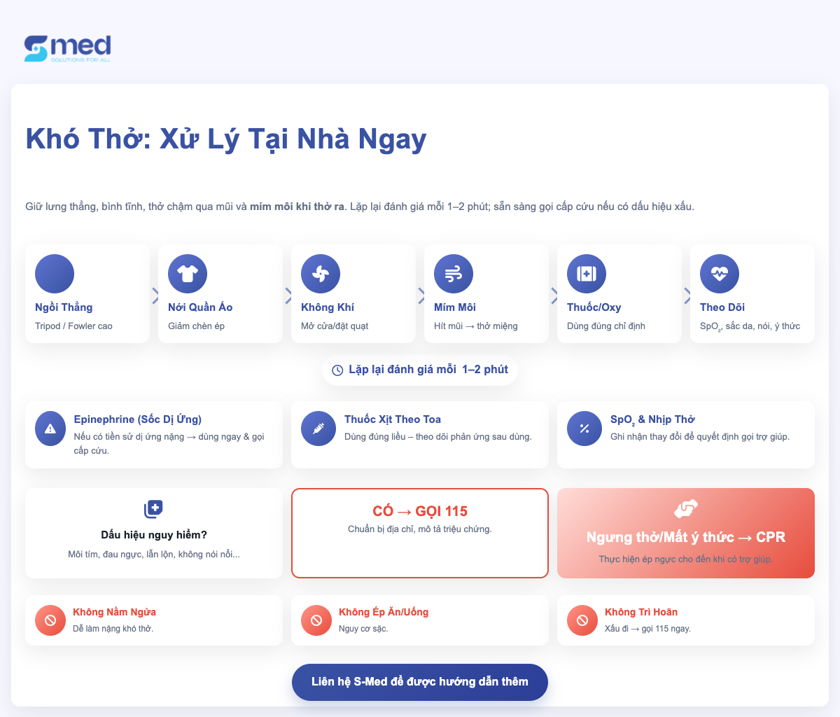 Dù đang chăm sóc người thân hay chính bản thân mình, việc nhận biết kịp thời dấu hiệu khó thở là một bước quan trọng để giữ vững sự an tâm và tránh những biến chứng đáng tiếc. Những thiết bị hỗ trợ hô hấp đáng tin cậy từ S-med sẽ là người bạn đồng hành, mang lại giải pháp nhẹ nhàng, đúng lúc. Truy cập s-med.vn để chọn lựa sản phẩm phù hợp và lắng nghe cơ thể từ những nhịp thở đầu tiên.
