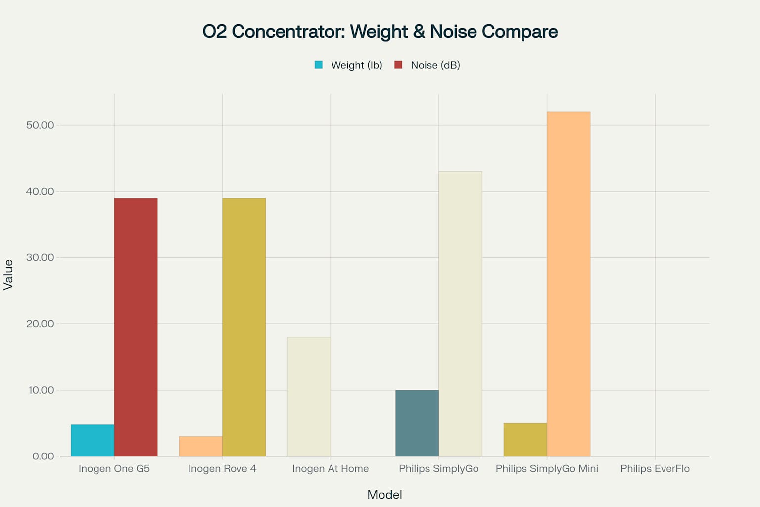 Điểm khác biệt chính giữa máy tạo oxy Inogen và Philips cho gia đình nằm ở trọng lượng, độ ồn, thời lượng pin và luồng oxy.