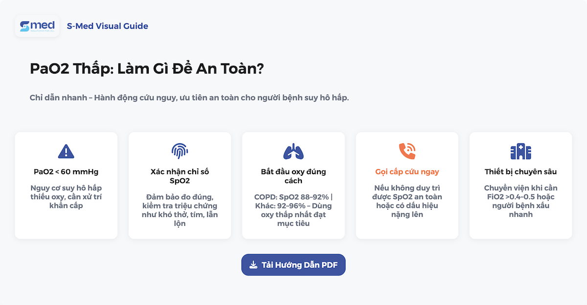 Hãy nhớ: Đừng đánh giá PaO2 chỉ qua "ngưỡng bình thường". Luôn kết hợp với tỷ lệ FiO2, xu hướng thay đổi và tình trạng lâm sàng hiện tại để đưa ra quyết định phù hợp, nhất là khi chăm sóc người thân mắc bệnh hô hấp mãn tính hoặc vừa được chẩn đoán COPD.