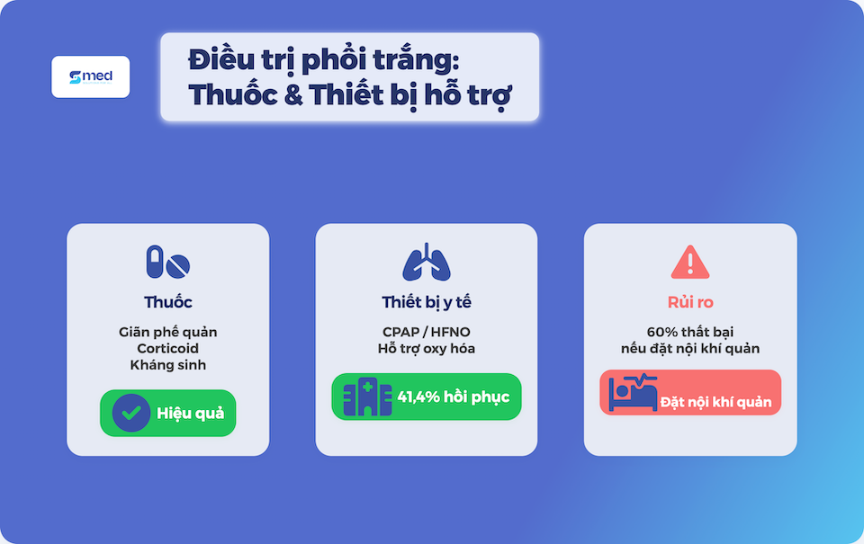 Điều trị phổi trắng thường kết hợp giữa thuốc và thiết bị hỗ trợ hô hấp để cải thiện chức năng phổi và giảm triệu chứng.