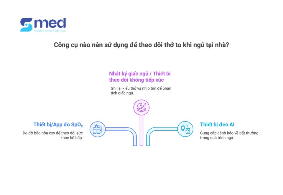 Để theo dõi và hỗ trợ tình trạng thở to khi ngủ tại nhà, bạn nên sử dụng kết hợp các công cụ như ứng dụng đo SpO₂, nhật ký giấc ngủ và thiết bị đeo AI. Những giải pháp này giúp phát hiện sớm tình trạng thiếu oxy, cải thiện việc tuân thủ điều trị và tăng khả năng theo dõi từ xa.